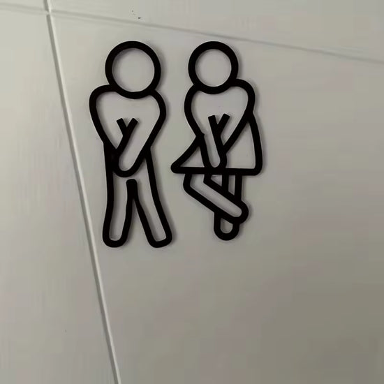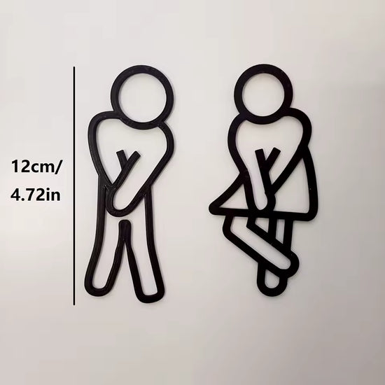 Funny Bathroom Signs for Men Women Creative 2D Flat Restroom Door Decor Restaurant Hotel Cafe Toilet Signage Wall Sticker