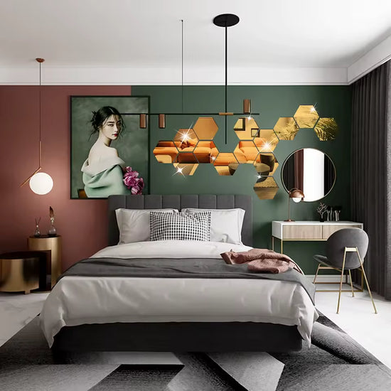 6/12pcs 3D Hexagon Mirror Wall Sticker Rose Gold DIY TV Background Living Room Stickers Wall Decor Bedroom Bathroom Home Decor
