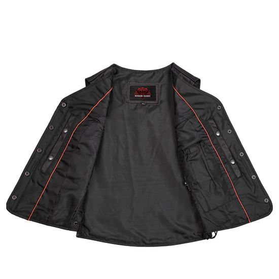 2 inside concealed gun pockets made of special heavy duty textile with built-in holsters and snap closure.