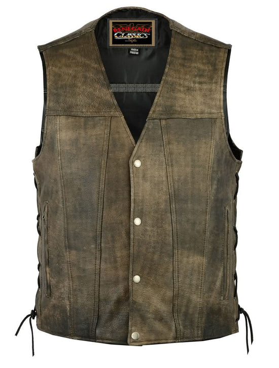 Highlights of the Men's Brown Leather Side Lace Motorcycle Vest