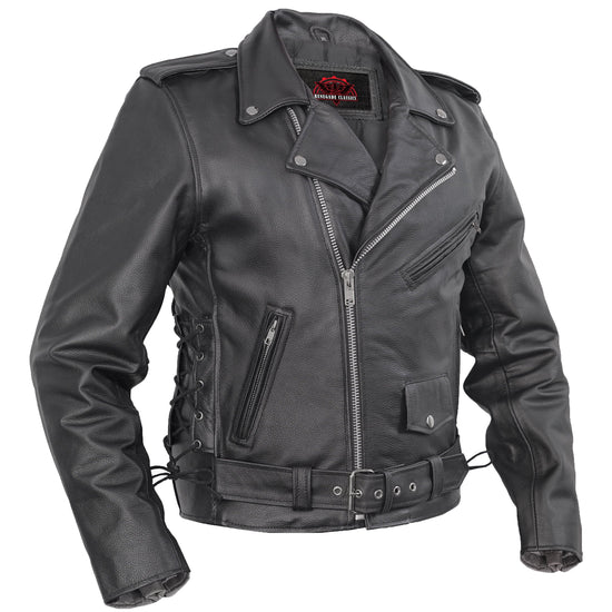 Classic Star Black Men's Leather Motorcycle Jacket – Adjustable Fit
