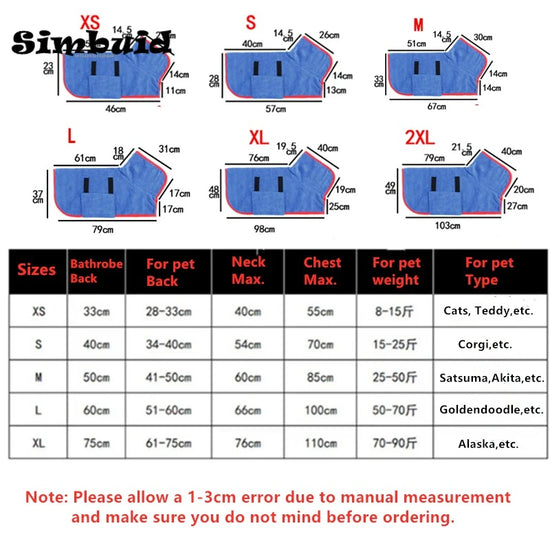 Pet Bathrobe Adjustable Absorbent Towel for Large Medium Small Dog Super Fast Drying Moisture Bath Robe